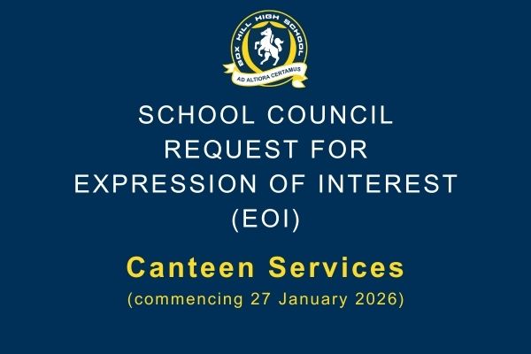 Box Hill High School Council is calling for Expressions of Interest (EOI) for Canteen Services (to commence 27 January 2026). Click READ MORE below for further details and how to submit an EOI.